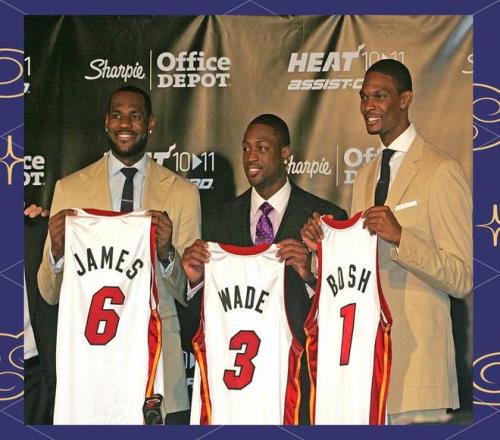 2010年詹姆斯在波什加盟熱火不久便高調(diào)宣布加盟邁阿密熱火,開啟抱團(tuán)奪冠的先河。詹姆斯再2003年到2010年之間效力克利夫蘭騎士,在這7個賽季,詹姆斯拿下2座MVP獎杯,但球隊(duì)始終無法突破凱爾特人等強(qiáng)隊(duì)的封鎖,未能如愿收獲總冠軍獎杯。